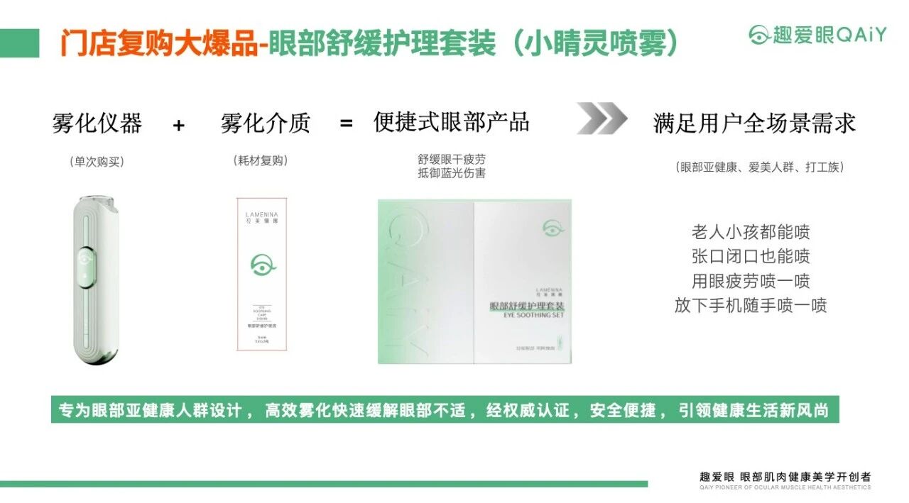 趣爱眼就认准一件事:做眼部肌肉 + 眼内外健康养护的领头羊,别人搞大而全,我们就把这一件事做精做透,跟别人拉开差距,建立成我们的专业壁垒。